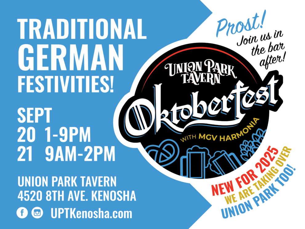 Kenosha’s favorite fall tradition is back — and this year, it’s bigger, better, FREE to attend, and taking over the neighborhood! Union Park Tavern and MGV Harmonia are proud to present the 9th Annual Oktoberfest, happening Saturday and Sunday, September 20–21, 2025, at Union Park Tavern (4520 8th Ave) and the newly added Union Park (4500 7th Ave).