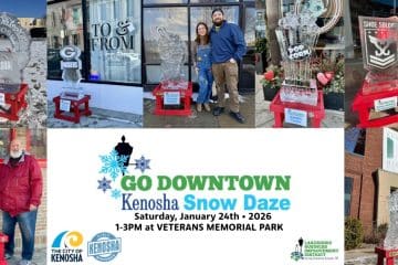 Veterans Memorial Park 5220 Sixth Avenue, Kenosha, WI, United StatesSnow Daze 2026Saturday, January 24, 2026 | 1–3 PMVeterans Memorial Park (5220 Sixth Ave) & throughout Downtown Kenosha Downtown Kenosha transforms into a winter wonderland during the 12th annual Snow Daze Festival! Enjoy live ice sculpting demonstrations by Art Below Zero beginning at 1 PM, family-friendly music with DJs, and toasty s’mores by the fire...