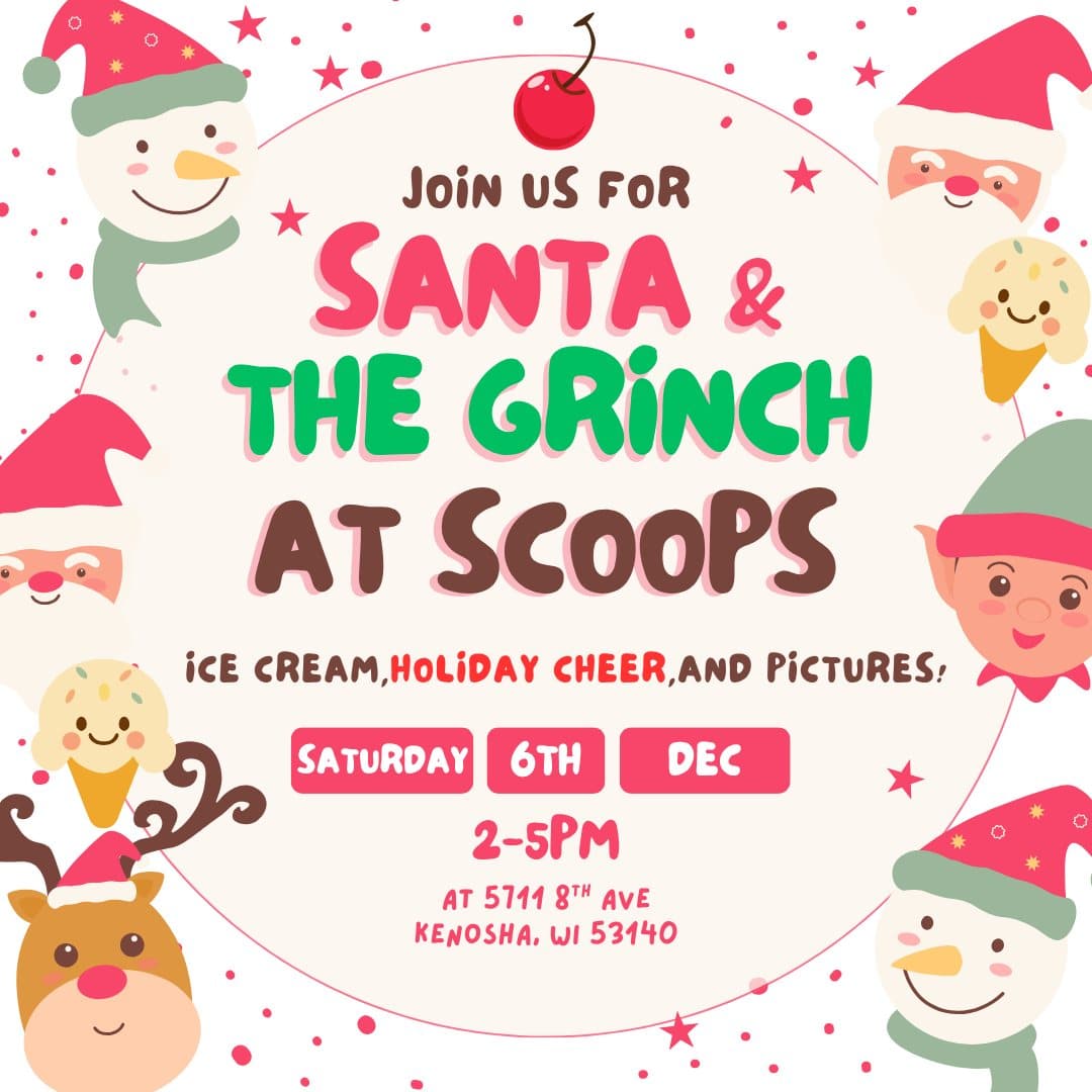 Join us for our 11th annual Christmas party with Santa and The Grinch! Santa is making a special stop at Scoops Ice Cream & Candy to spread some holiday cheer before Christmas. He'll be serving ice cream and taking photos. He's also brought the Grinch, who promised us he'd work hard and spread holiday cheer! |