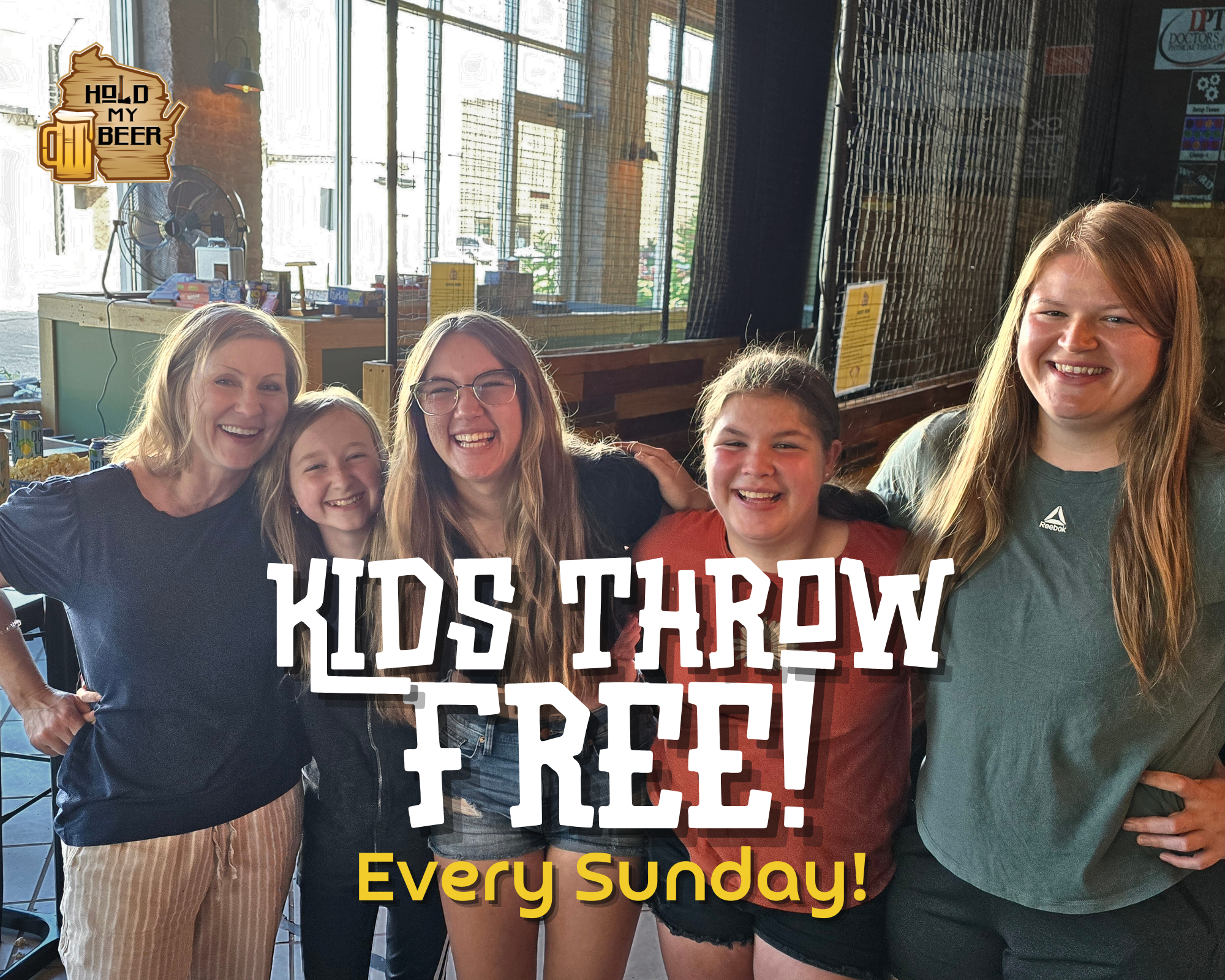 Bring your kiddos 10-17 years old in to throw for FREE with each paying adult (1:1) every Sunday!