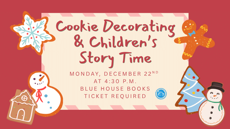 It's the most wonderful time of the year to celebrate the holidays with Blue House Books! Grab the kiddos, put on your coziest winter jammies, and join us on Monday, December 22nd, at 4:30 p.m. for a night of decorating cookies with Munch Custom Cookies and a holiday story time with Lisa from the TravelingTrunk!...