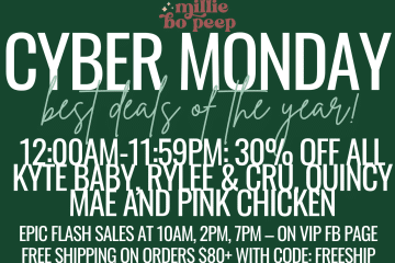 Millie Bo Beep 5720 6th Avenue, Kenosha, WI, United StatesCYBER MONDAY ✨MONDAY, 12/1 — 12AM-11:59PM — online only 30% off all Kyte Baby, Rylee and Cru, Quincy Mae and Pink Chicken! Epic Flash Sales — 10AM, 2PM, 7PM **Watch our Facebook VIP page** Free Shipping on orders $80+ for VIP customers