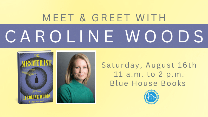 Join Midwestern author Caroline Woods at Blue House Books on Saturday, August 16th from 11 a.m. to 2 p.m. for the paperback release of “The Mesmerist”, a 2024 NPR Book of the Year!