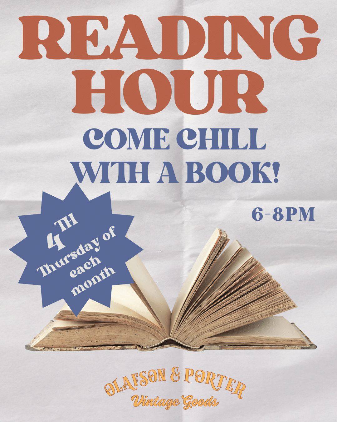 Join us for our monthly reading hour at Olafson & Porter Vintage Goods!