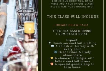 Elan Event Venue 720 58th Street, Kenosha, United StatesHAPPY OCTOBER! If you missed our last cocktail class, get ready for this one! Join us for an unforgettable cocktail experience where you’ll do more than just sip—you’ll create! Learn the art of custom cocktail making while uncovering the fascinating history behind your favorite spirits. Expect: Hands-on cocktail crafting A splash of history with every...