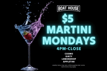 Boathouse Pub & Eatery 4917 7th Avenue, Kenosha, WI, United States$5 Martinis from 4PM-Close, Choice of Cosmo, Dirty, Appletini & Lemon Drop. Weekly menu may vary. While supplies last. Some Restrictions may apply